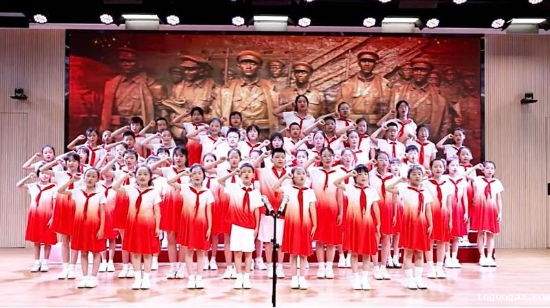 承担此次展演重任的合唱团队,由我校 2-5 年级的学生组成。这群平均年龄不足 10 岁的孩子,用超越年龄的专注力与团队精神,在省级舞台上完成了精彩绽放。为了呈现最佳效果,指导老师周菁菁带领孩子们利用课余时间刻苦训练:午休时,当校园渐入宁静,音乐教室已响起练声的旋律;课后服务时段,孩子们放弃休息,反复打磨声部融合与情感表达。从基础的气息控制、发声练习,到复杂的声部配合、情感处理,每一个音符的精准、每一次动作的演绎,都凝聚着师生们的心血。尽管排练辛苦,但没有一个孩子退缩,大家相互打气,在歌声中收获成长与友谊。
