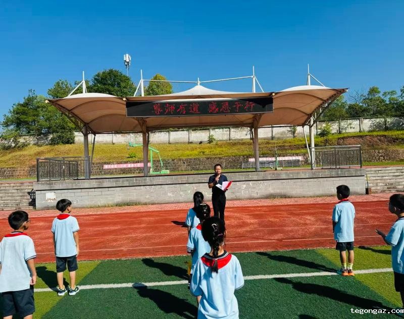 国旗下,学生代表陈芸熙进行演讲,她以“老师,您辛苦了”为开篇,分享了日常学习中老师耐心辅导、默默付出的点滴故事,并向全校同学发出倡议:以课堂上的专注听讲、作业中的认真书写、见面时的礼貌问候,将感恩之心化为实际行动。