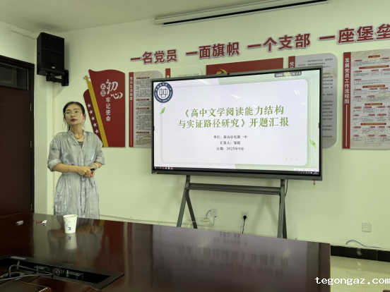 在开题论证环节,屯溪一中两项 2025 年度市级立项课题进行了汇报。《高中文学阅读能力结构与实证路径研究》课题聚焦当下高中文学阅读“重应试、轻素养”等痛点,以黄山徽文化为资源依托,试图达成文学阅读能力培养与本土文化认同的双向促进。专家组肯定该选题的学术与实践价值,同时建议强化徽文化资源和能力结构的关联,构建完整研究闭环,并开发具有黄山地域特色的梯度课例,还要开发科学的测评量表,平衡好文学多元解读和实证标准化的关系。